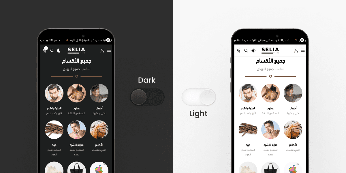 دعم كامل لزر التنقل بين الوضع الداكن والفاتح