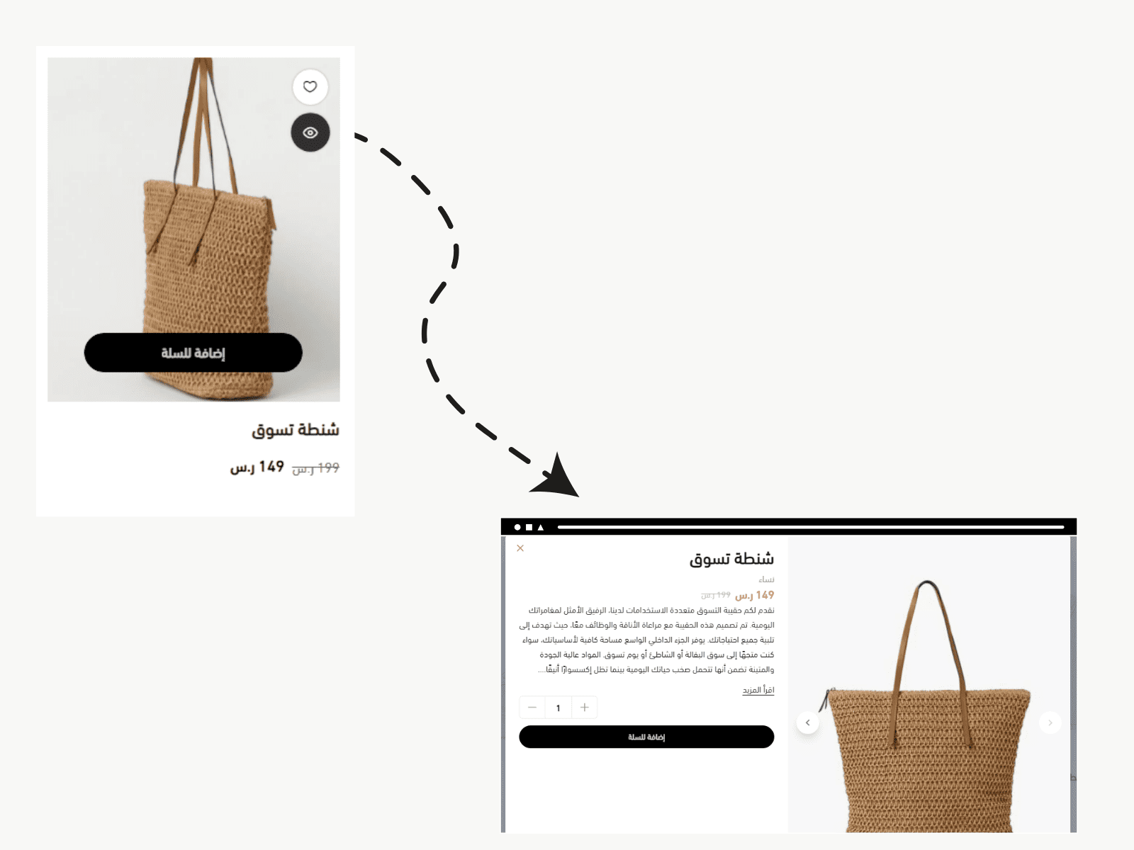 مع ميزة العرض السريع للمنتج يمكنك اظهار تفاصيل المنتج بدون الدخول الي صفحة المنتج