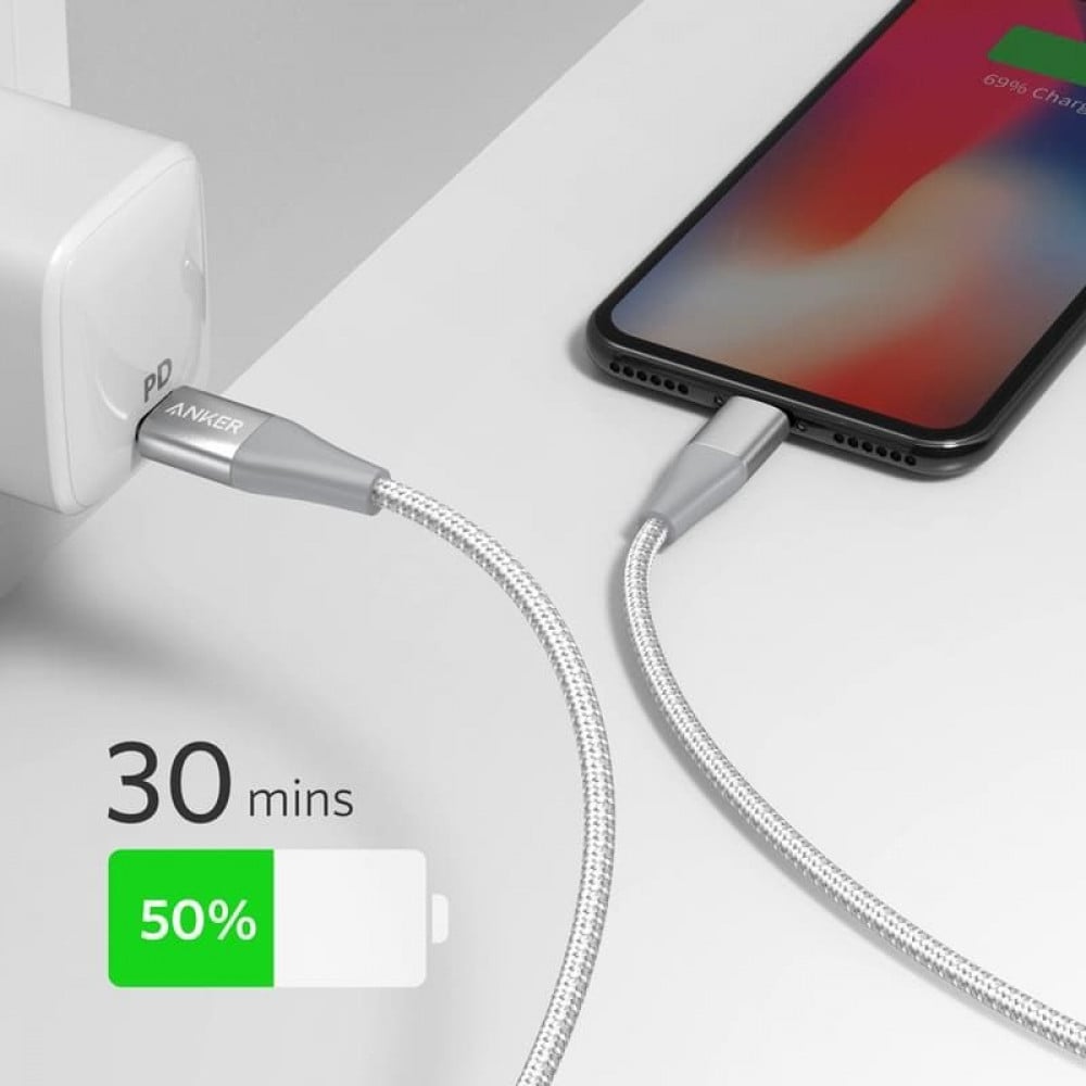 Anker 1.8m Type C to Lightning iPhone Cable Silver Fabric